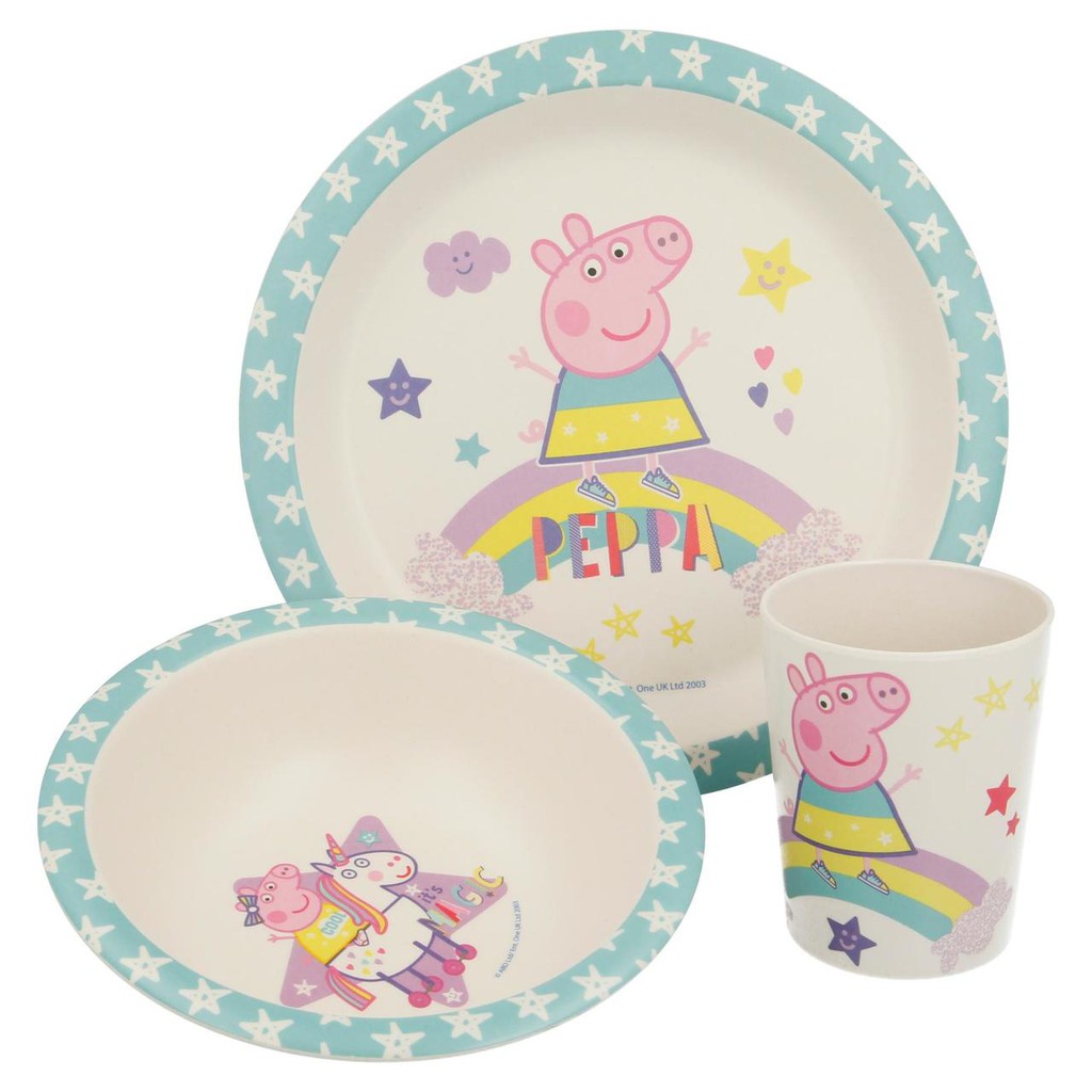Peppa Pig 3pcs Coloured Bpa Free Bamboo Dining Set Shopee